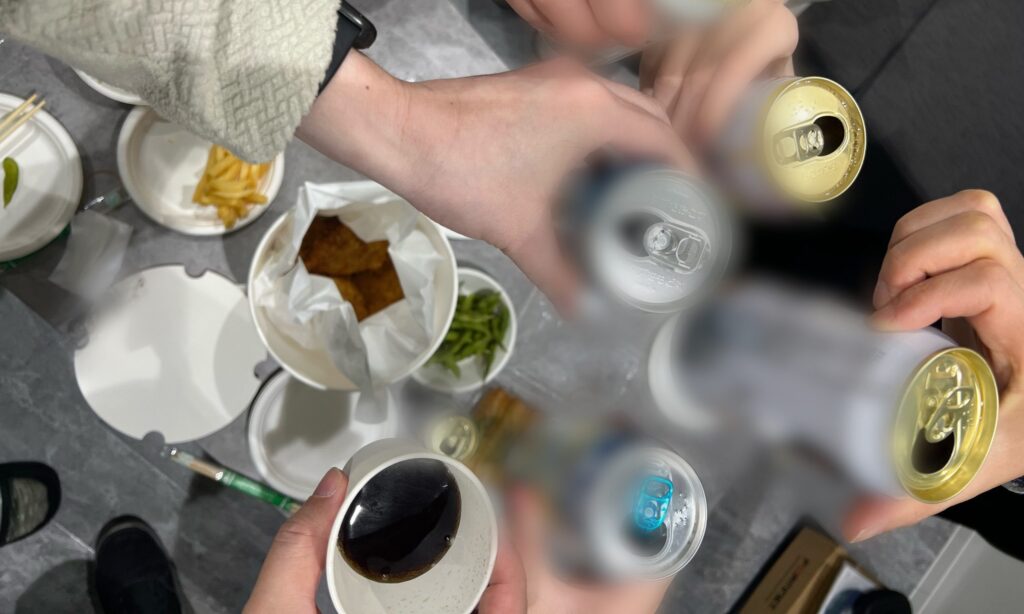 当社では、業務終了後に社内のフリースペースを利用して、不定期で飲み会を開催しています。